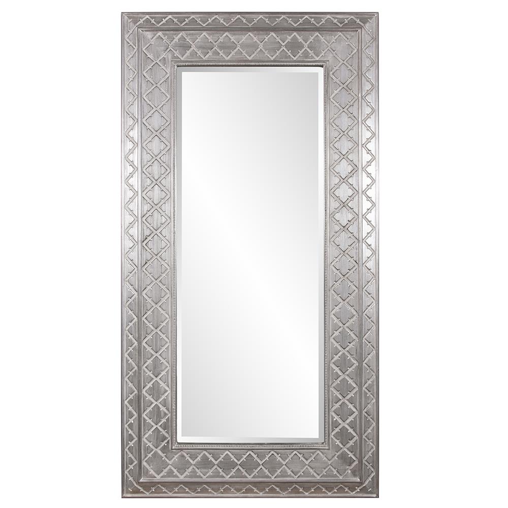 Our Bianca Mirror features an oversized rectangular frame characterized by a dimensional lattice pattern. The entire piece is then covered by a lovely antique silver finish. The mirror of the frame has a bevel, enhancing its overall look. D-rings are affixed to the back of the frame so that the mirror is ready to hang right out of the box in either a horizontal or vertical orientation! This mirror also includes security hardware to safely attach the large frame to the wall when using as a floor mirror.