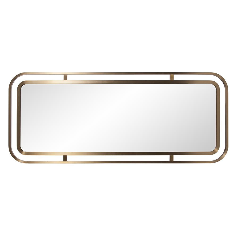 Our Dearborn Mirror is a stately piece. It features a tall rectangular stainless steel frame. The corners of the frame are rounded adding to its windowpane style. It is finished in a brushed brass. D rings are attached to the back of the frame so it can be hung right out of the box in either a horizontal or vertical orientation.