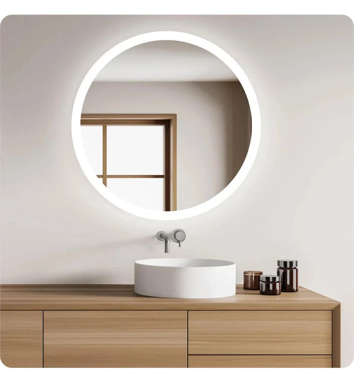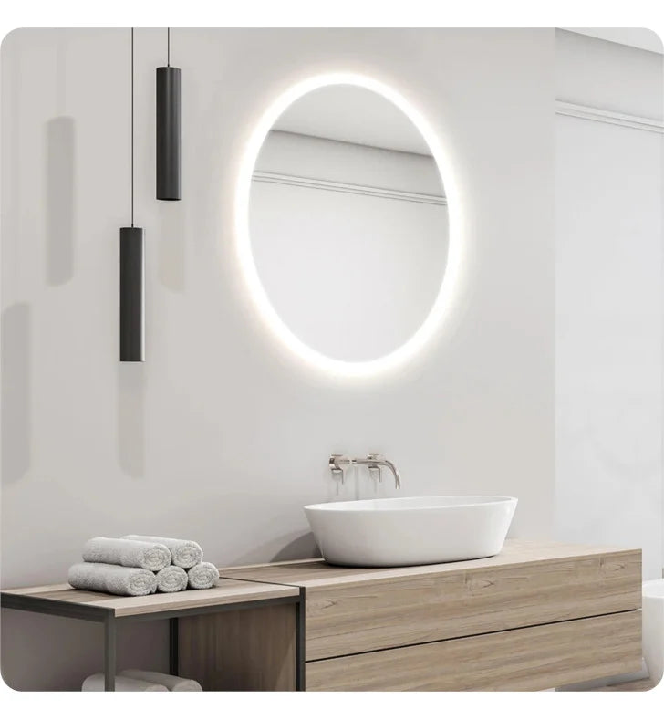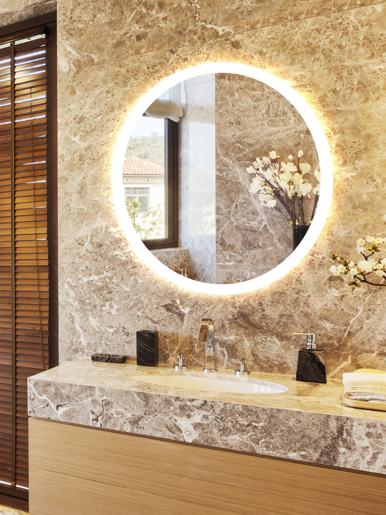 Bring a touch of Grandeur to your bathroom with the well-balanced shape, sleek lighted border, and tranquil wall glow of this timeless lighted mirror.