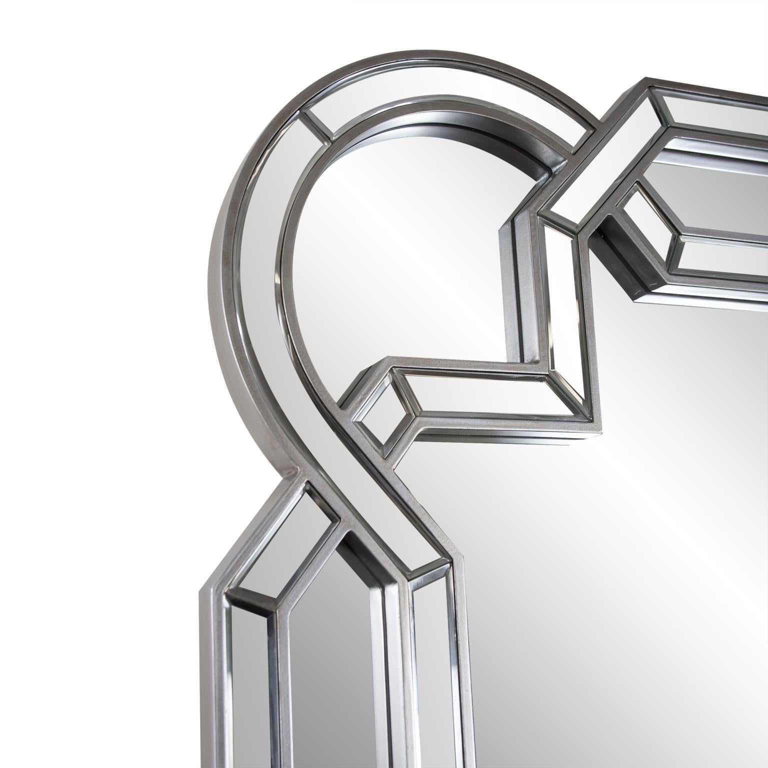 The Aleena mirror has been redesigned slightly to make an oversized mirror that delivers quite the dramatic styling. With graceful arching curves and intersecting lines of the champagne trim and multiple beveled mirrored frame. A lovely romantic mirror that fits right at home in the heart of the home or private dressing room.