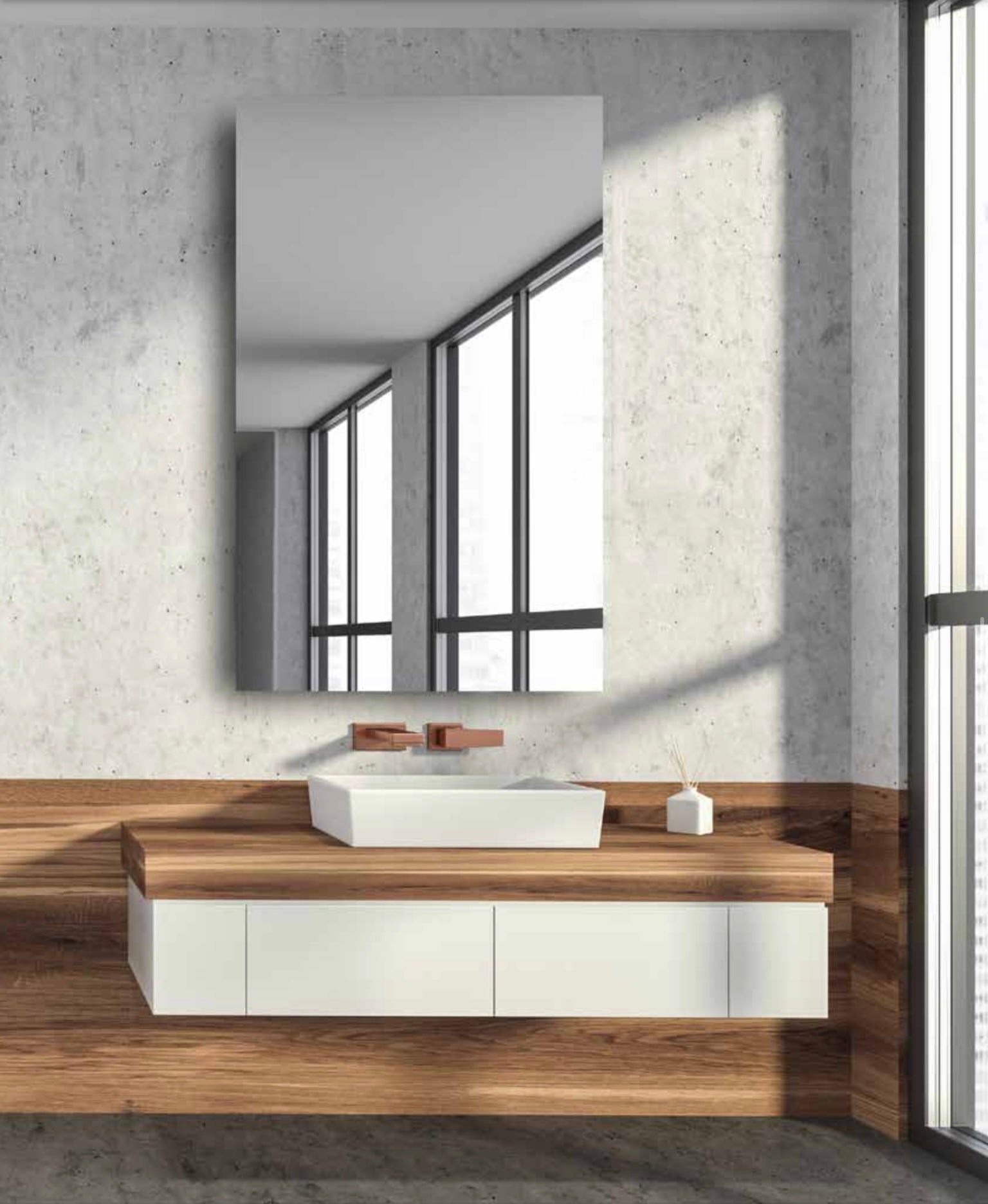 Simplicity, in both form and function, can easily accentuate any design style you choose. It features exceptional reflectivity, glass shelving, and conveniently placed integrated outlets.