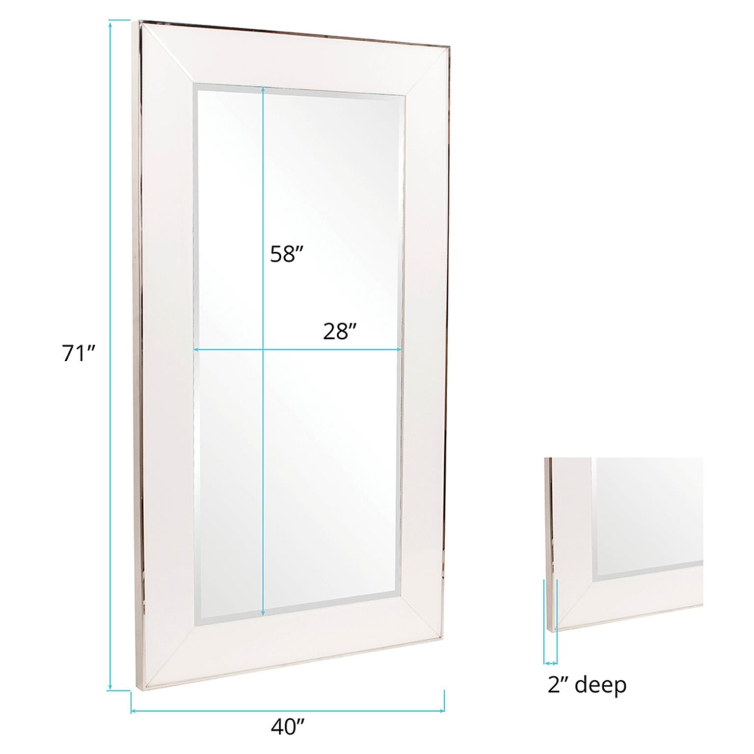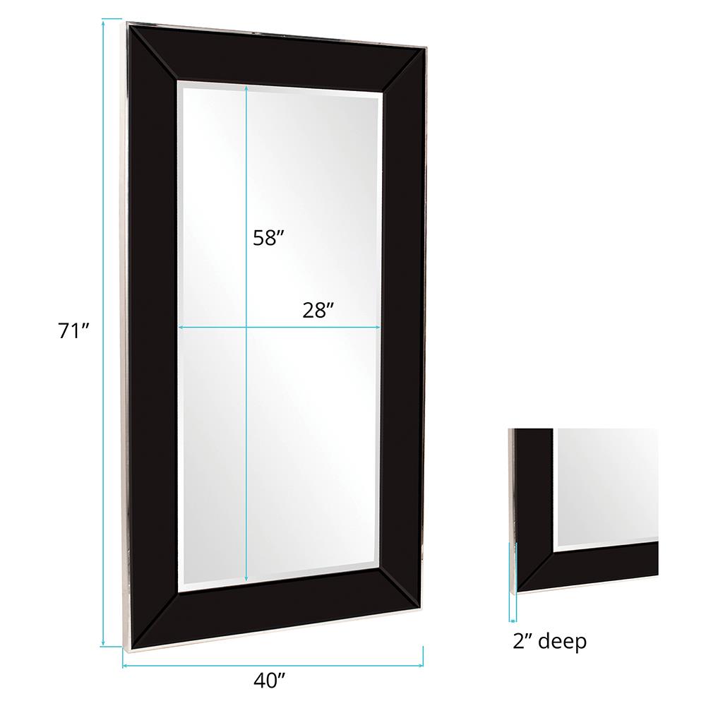 Our Devon Mirror is a striking piece. It features a large rectangular frame of black glass! It is then trimmed inside and out with a stainless steel border. The Devon Mirror is a perfect accent piece for an entryway, bathroom, bedroom or any room in your home. D-rings are affixed to the back of the mirror so it is ready to hang right out of the box in either a horizontal or vertical orientation! The mirrored glass on this piece is beveled adding to its beauty and style. It is also available in white.